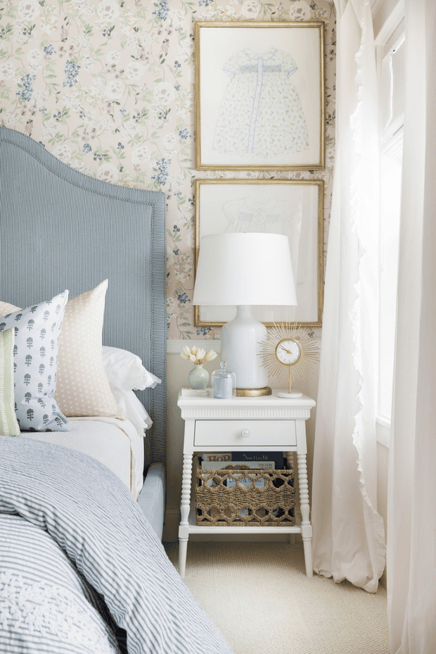 The living room is very dazzling with flower walls and ton-sur-ton furniture (Source: Pinterest)